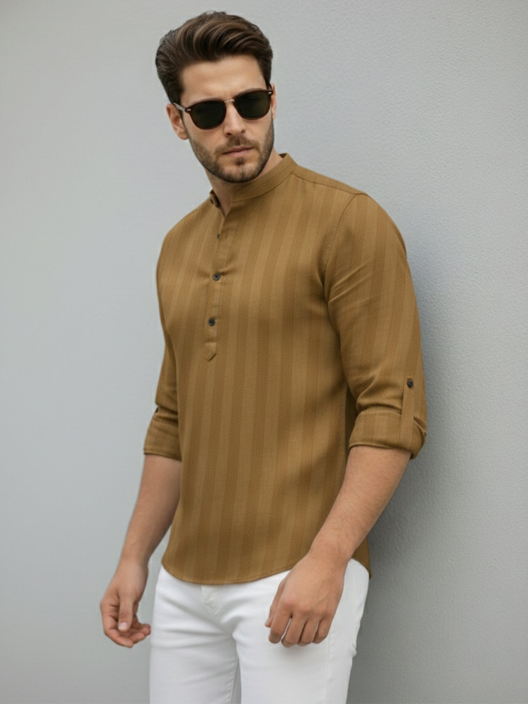 2. यह शर्ट अच्छी गुणवत्ता वाले सूती कपड़े से बनी है जिसका त्वचा पर कोमल स्पर्श होता है और इसकी सतह टेढ़ी-मेढ़ी होती है।