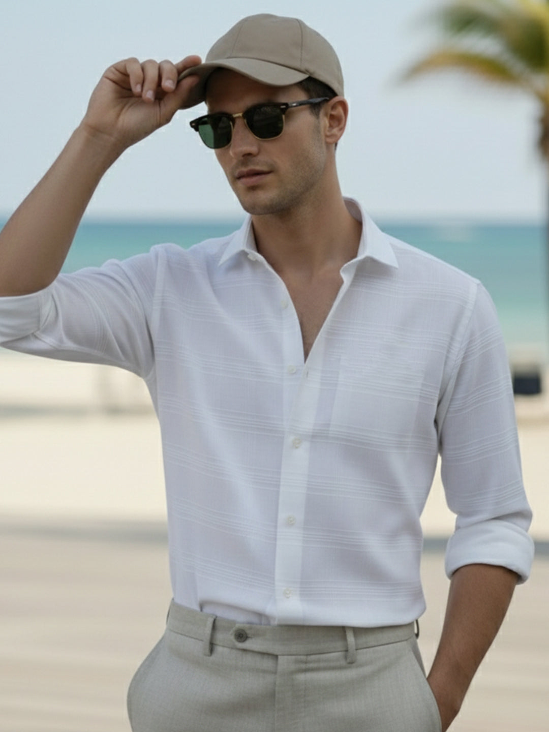 2. यह शर्ट अच्छी गुणवत्ता वाले सूती कपड़े से बनी है जिसका त्वचा पर कोमल स्पर्श होता है और इसकी सतह टेढ़ी-मेढ़ी होती है।
