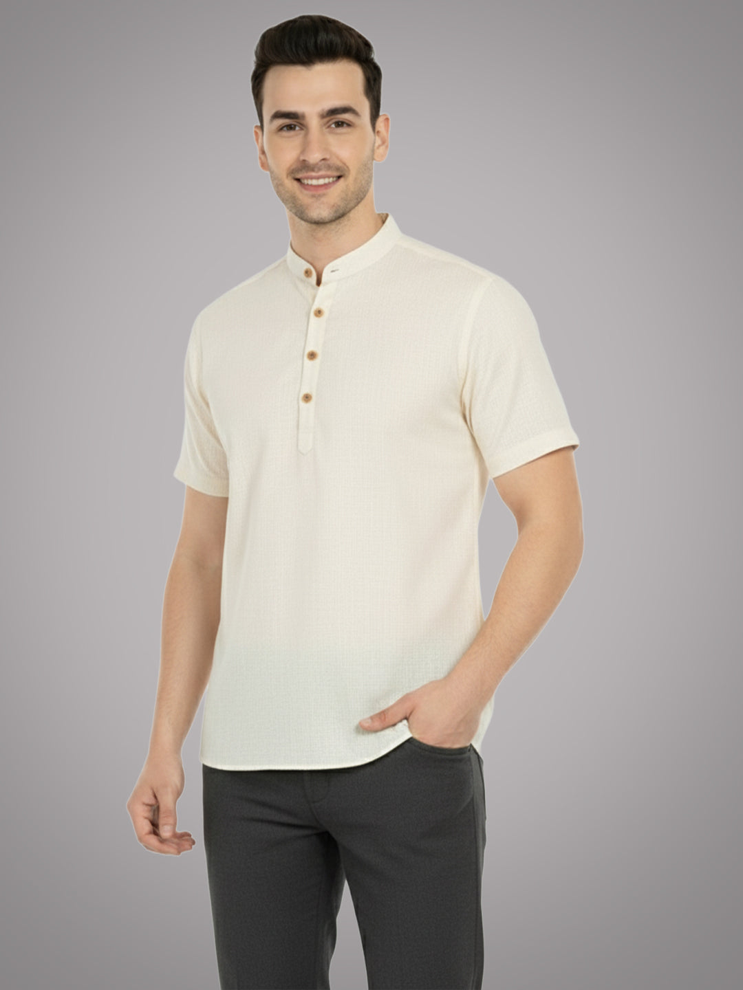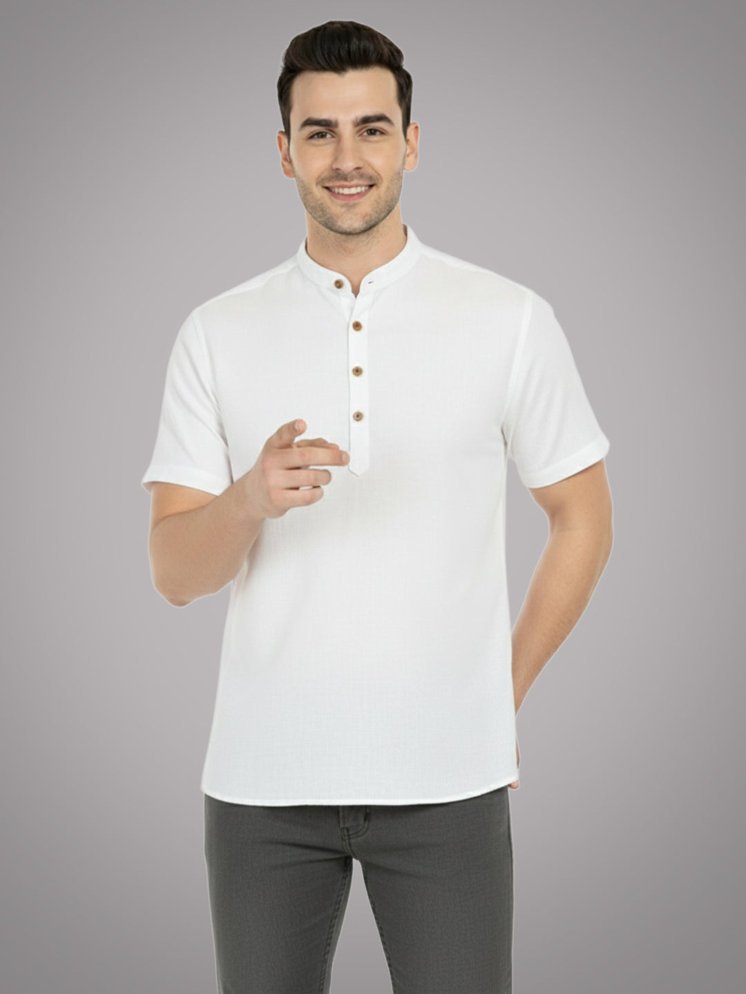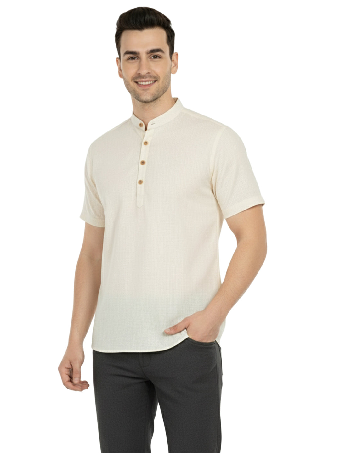 2. यह शर्ट अच्छी गुणवत्ता वाले सूती कपड़े से बनी है जिसका त्वचा पर कोमल स्पर्श होता है और इसकी सतह टेढ़ी-मेढ़ी होती है।