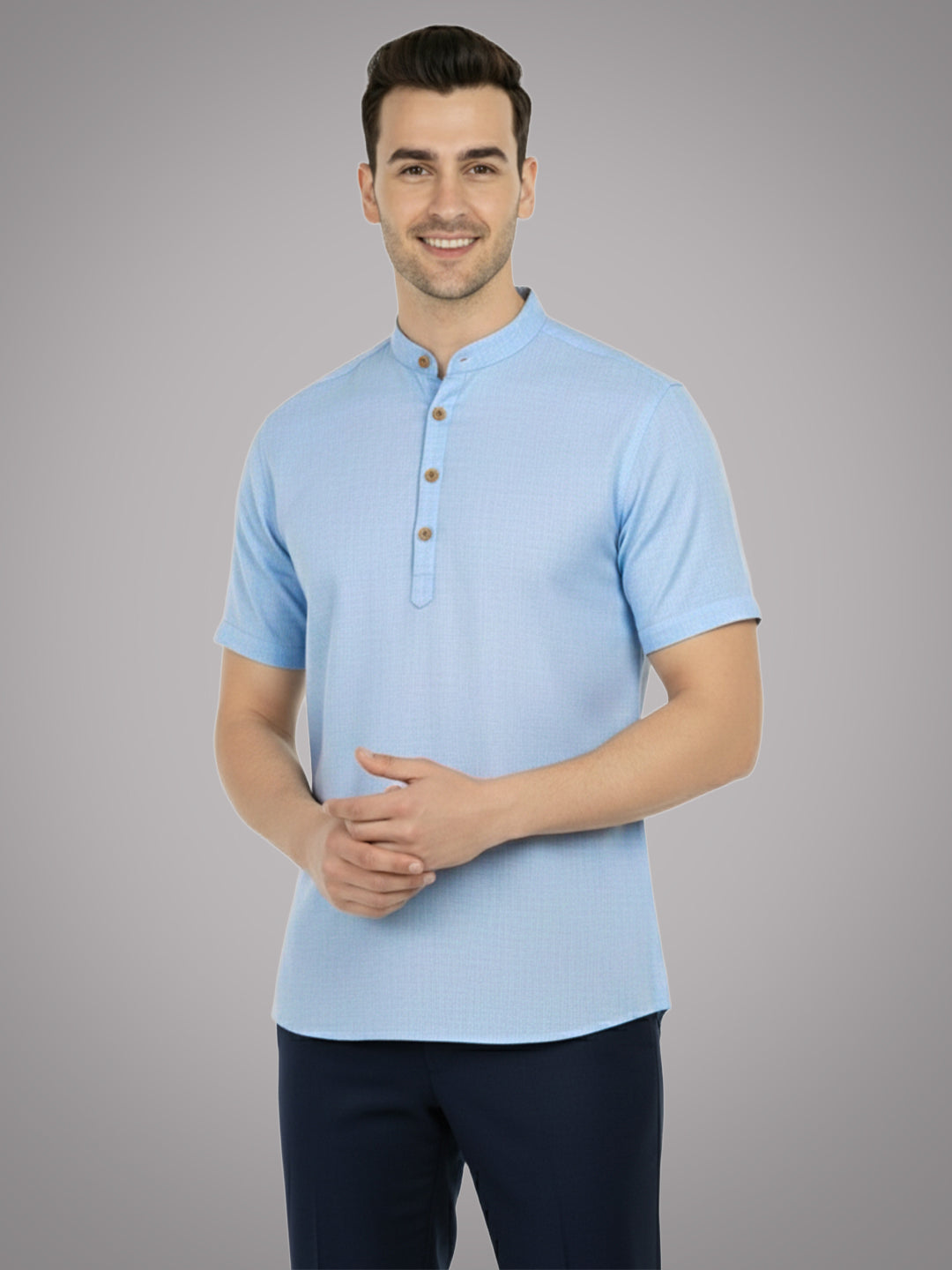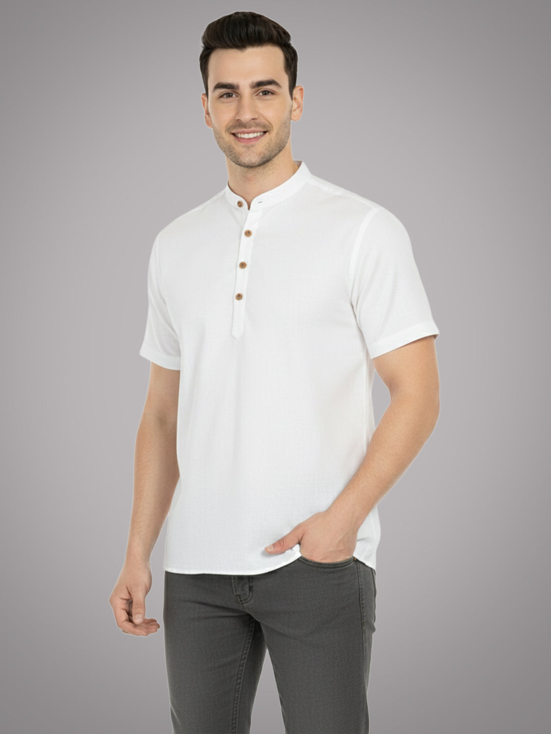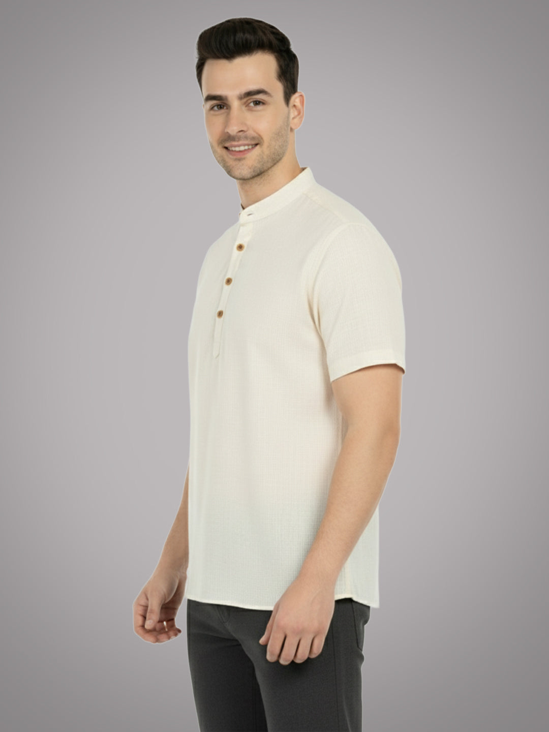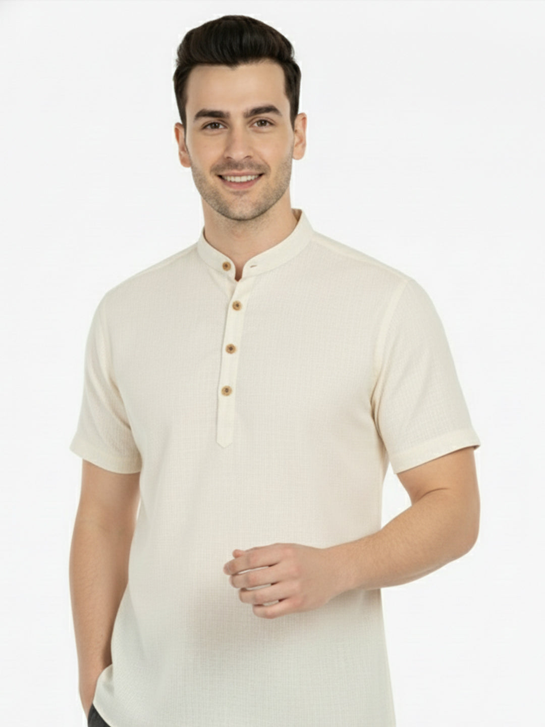 2. यह शर्ट अच्छी गुणवत्ता वाले सूती कपड़े से बनी है जिसका त्वचा पर कोमल स्पर्श होता है और इसकी सतह टेढ़ी-मेढ़ी होती है।