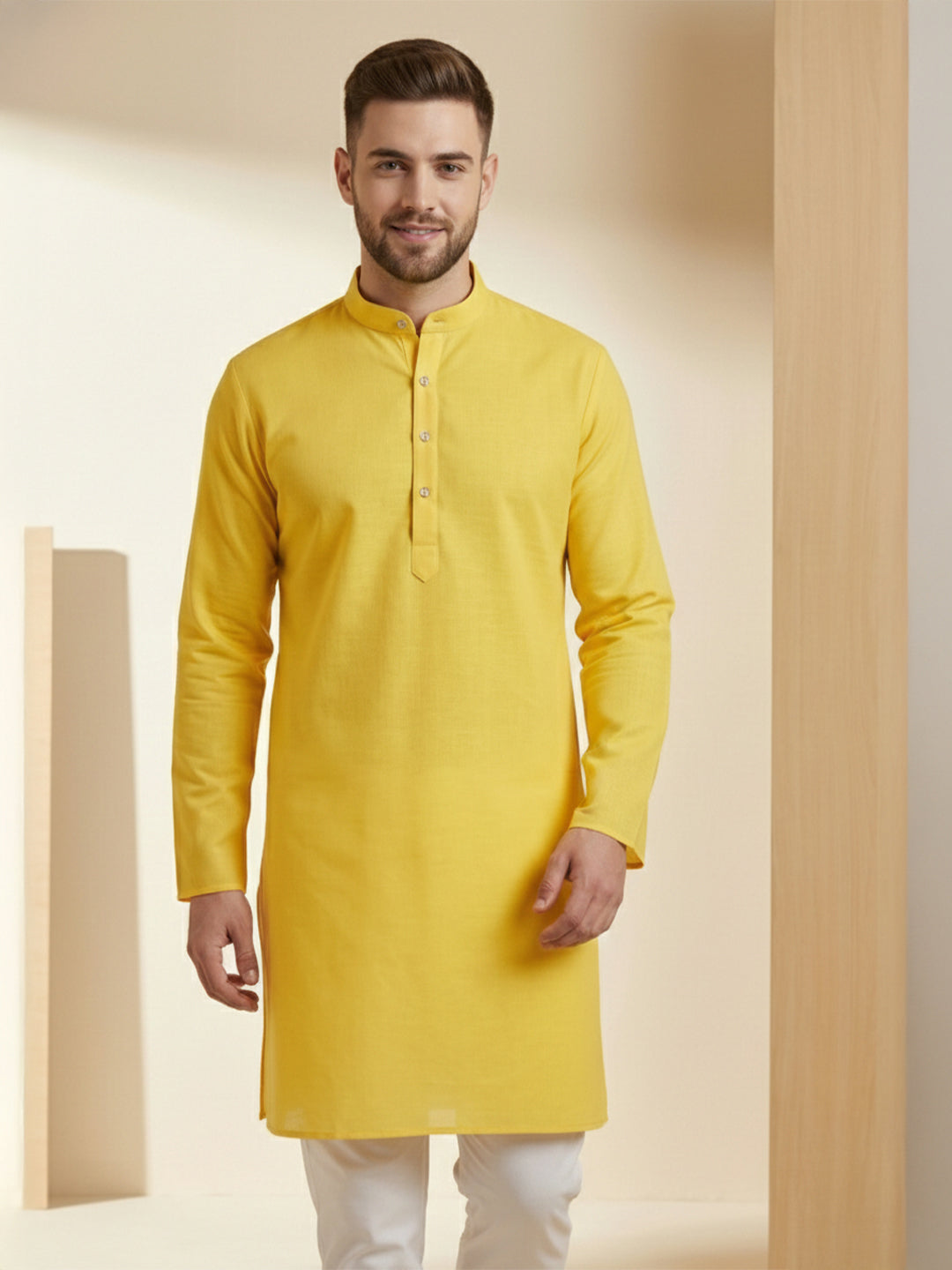 🧥 Material & Care: Crafted with a premium blend of cotton fabric, this kurta ensures durability and comfort. To maintain its pristine condition, machine wash with like colors in cold water, dry in shade, tumble dry low, and iron reverse side.