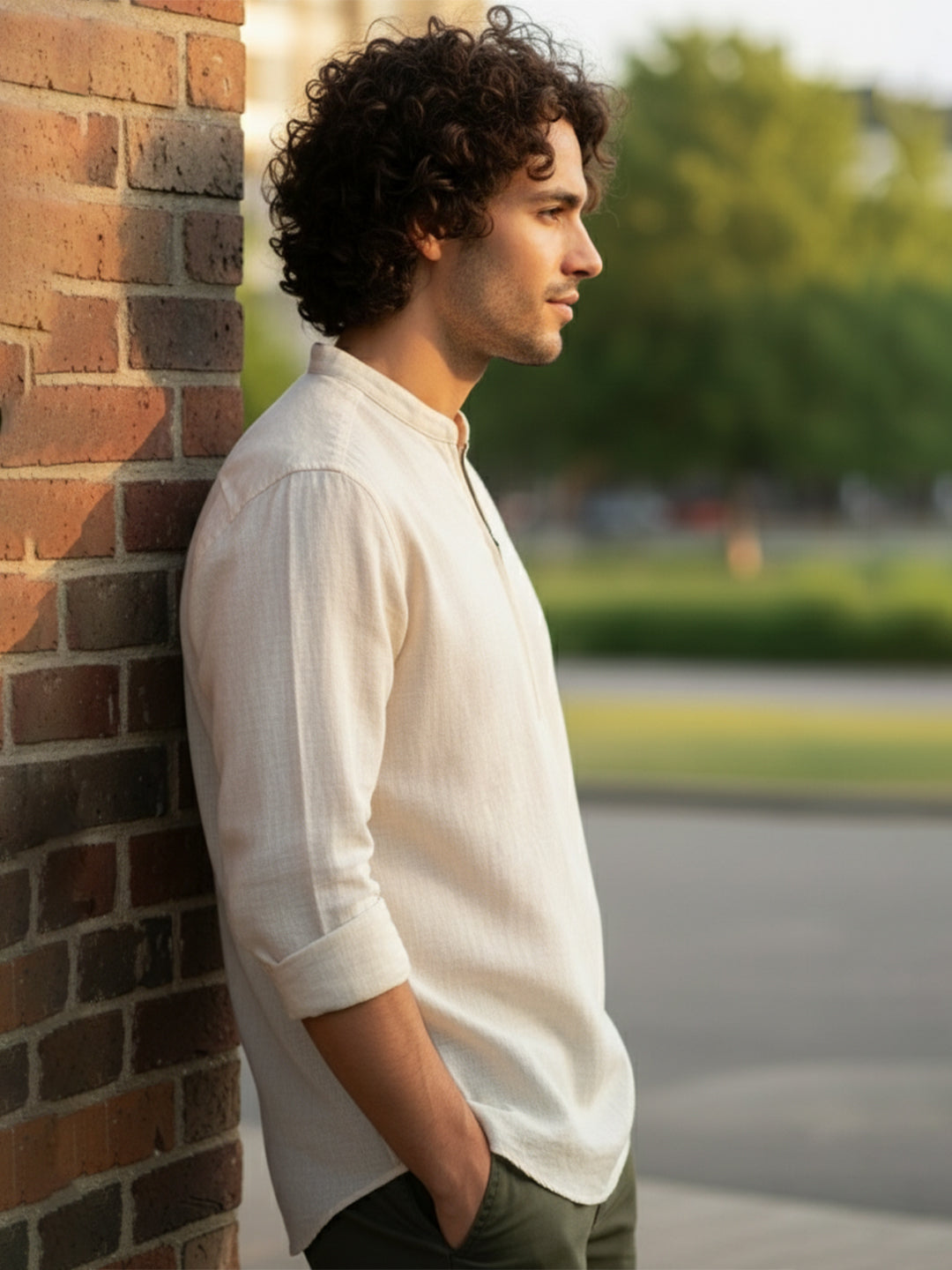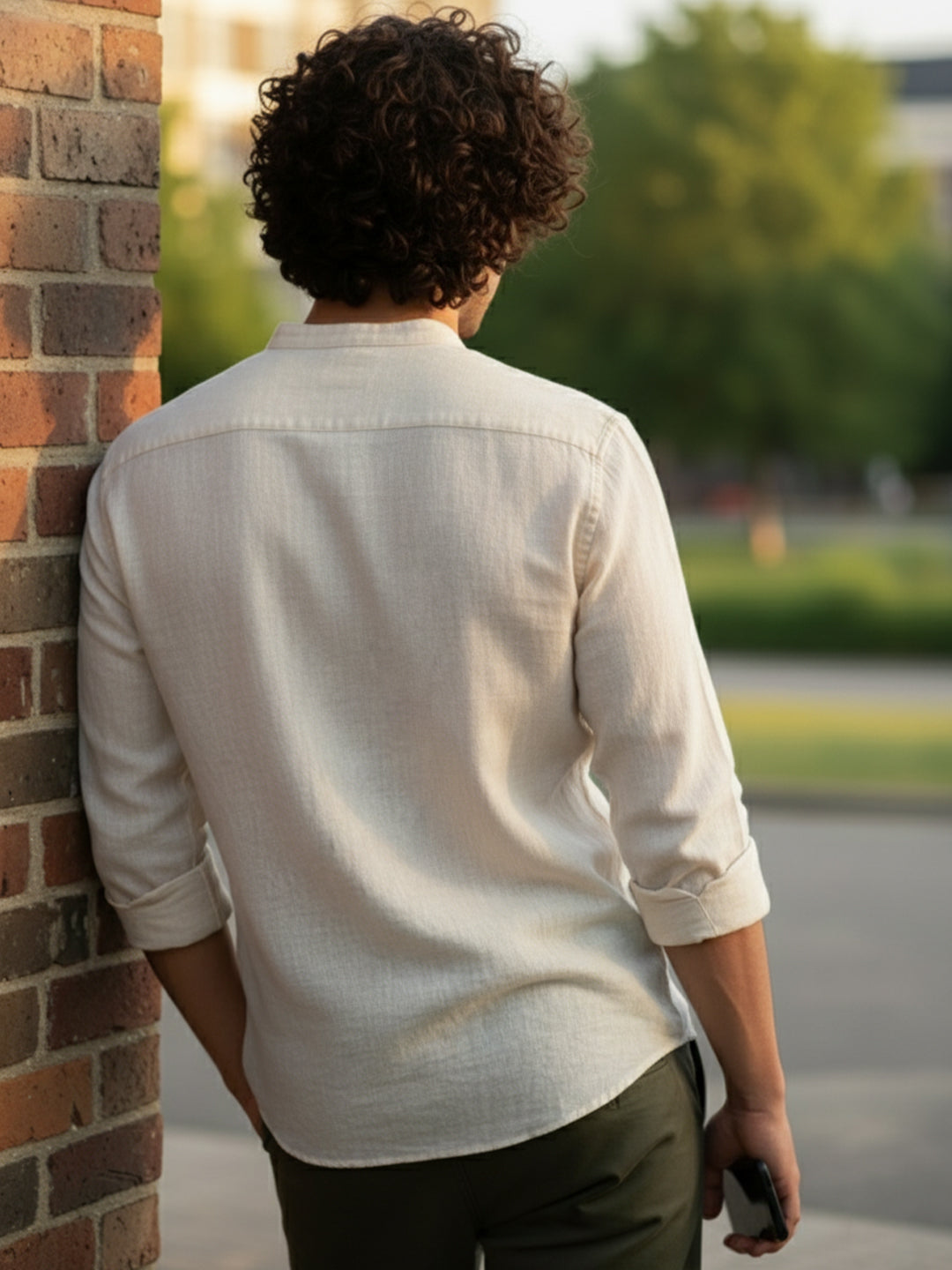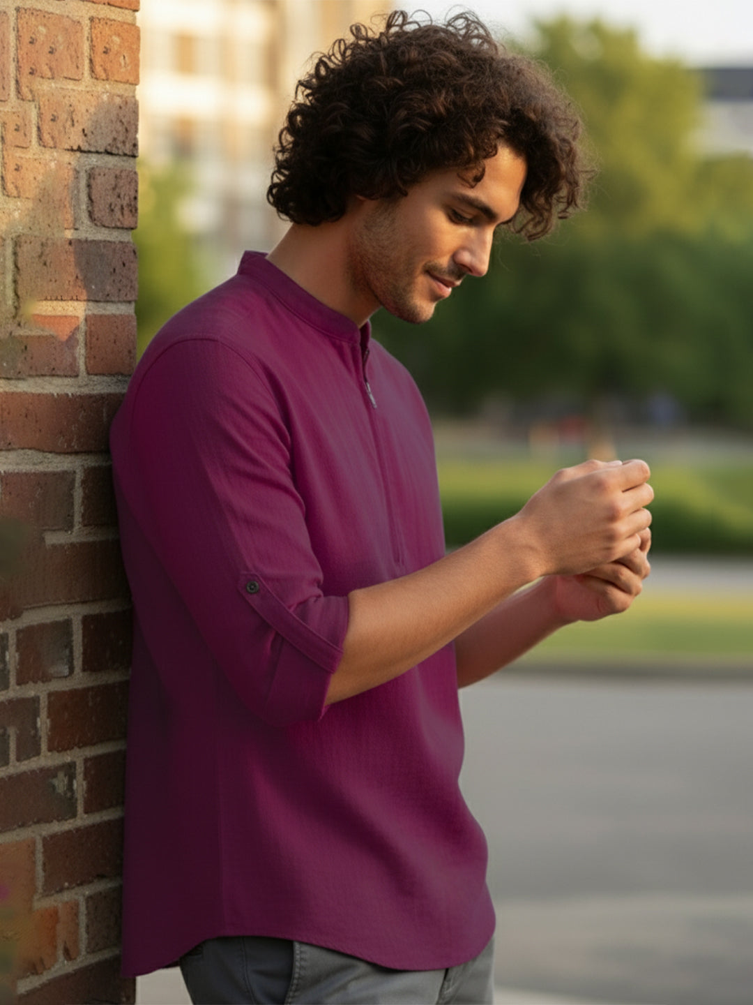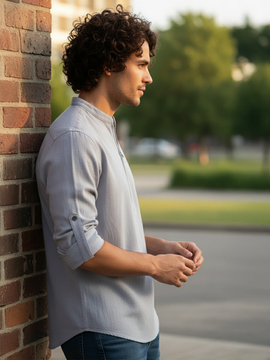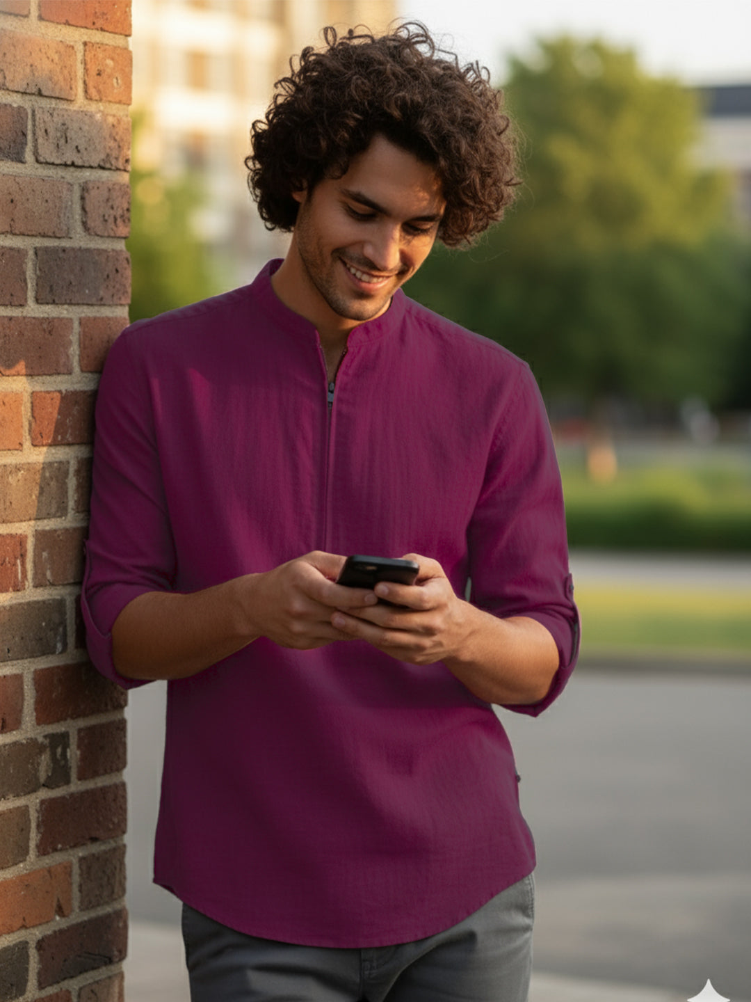 2. यह शर्ट अच्छी गुणवत्ता वाले सूती कपड़े से बनी है जिसका त्वचा पर कोमल स्पर्श होता है और इसकी सतह टेढ़ी-मेढ़ी होती है।