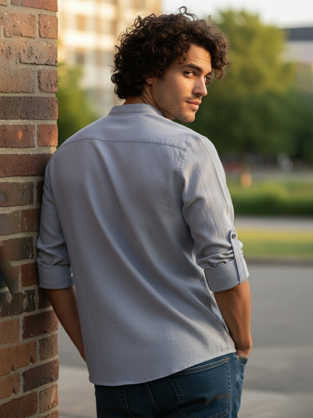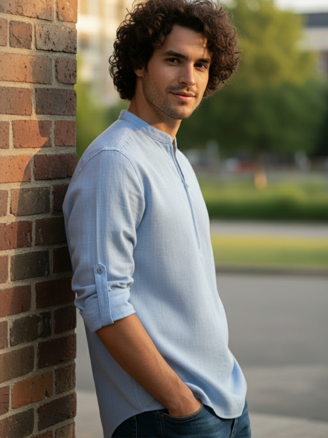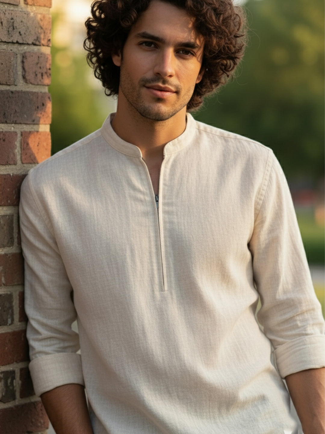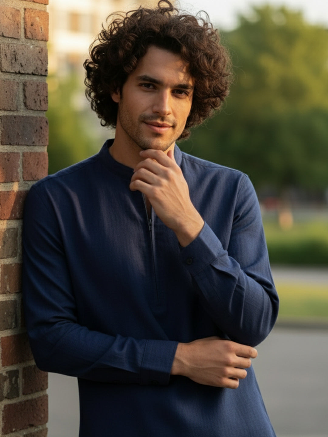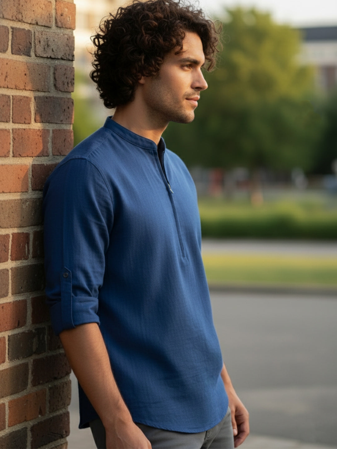 2. यह शर्ट अच्छी गुणवत्ता वाले सूती कपड़े से बनी है जिसका त्वचा पर कोमल स्पर्श होता है और इसकी सतह टेढ़ी-मेढ़ी होती है।
