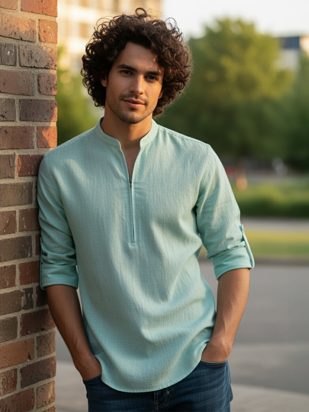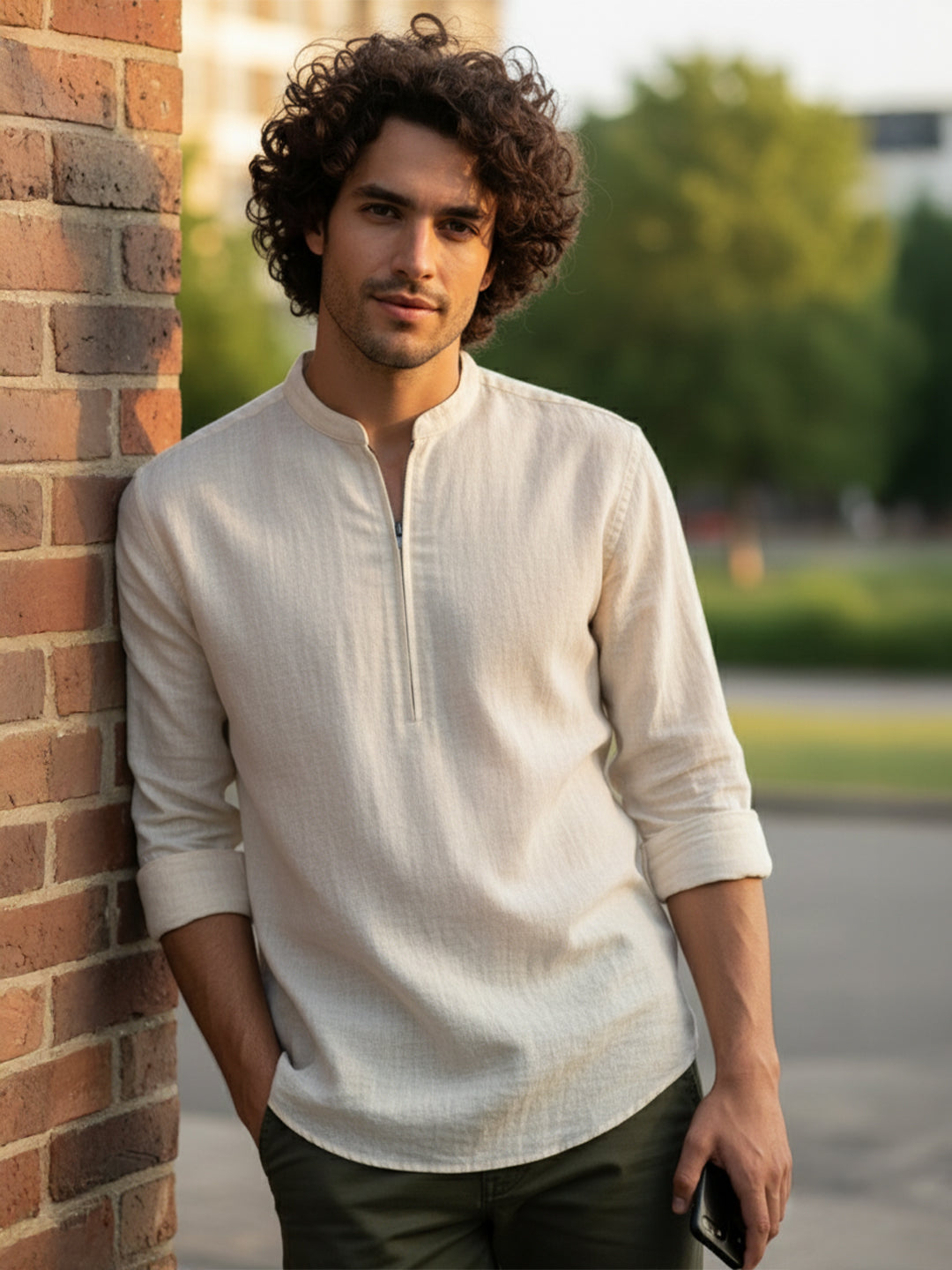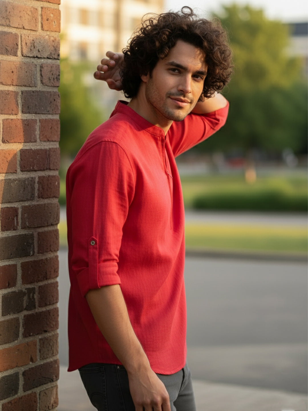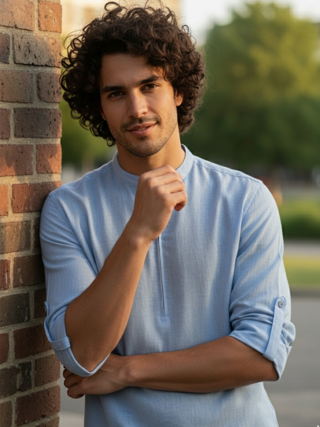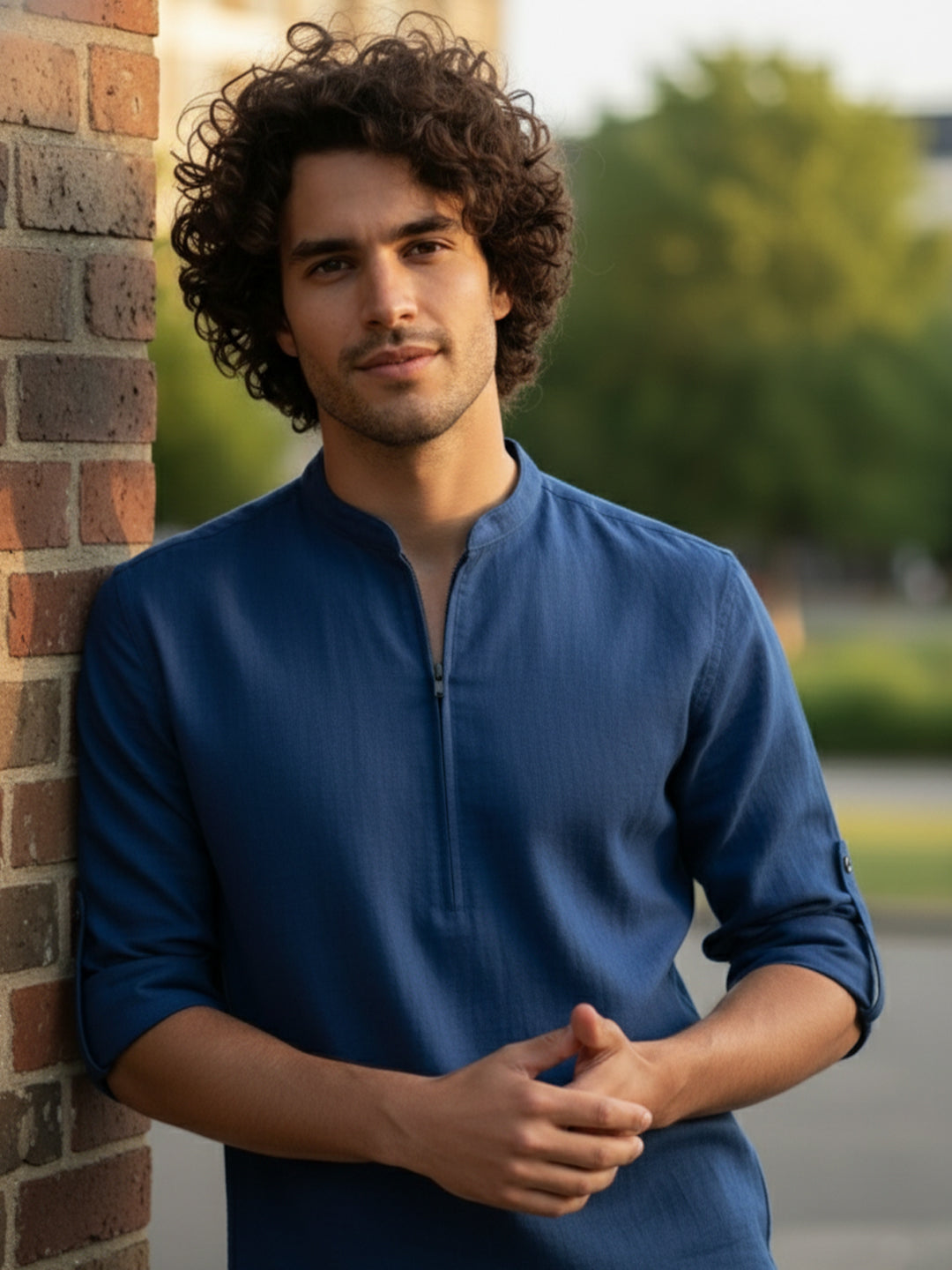 2. यह शर्ट अच्छी गुणवत्ता वाले सूती कपड़े से बनी है जिसका त्वचा पर कोमल स्पर्श होता है और इसकी सतह टेढ़ी-मेढ़ी होती है।