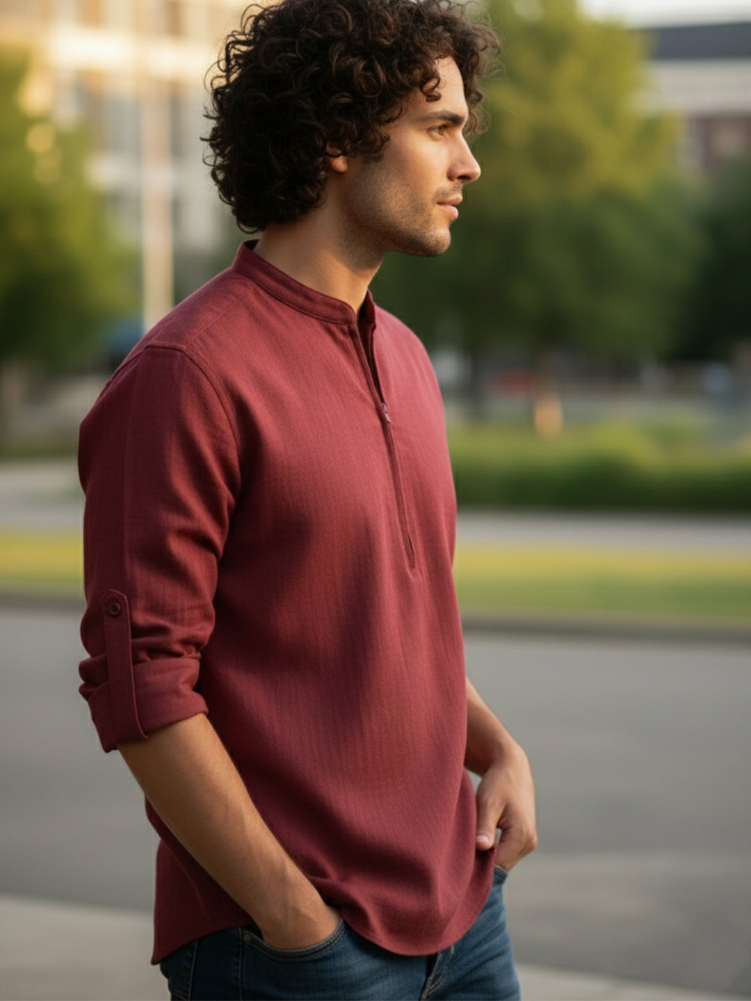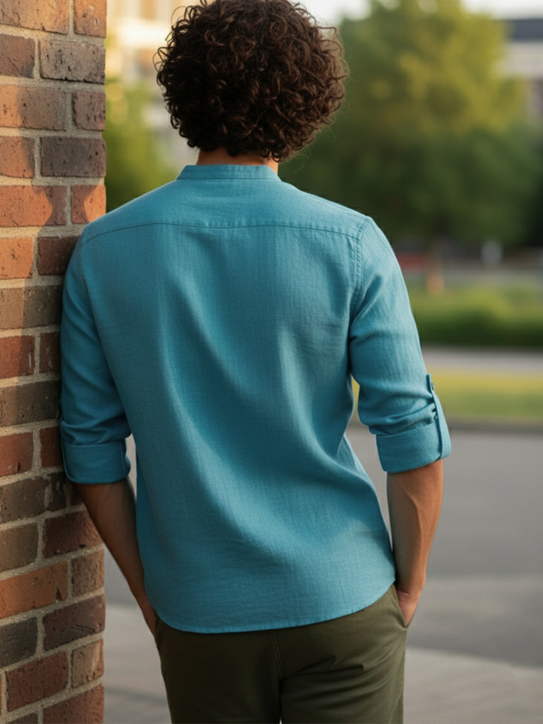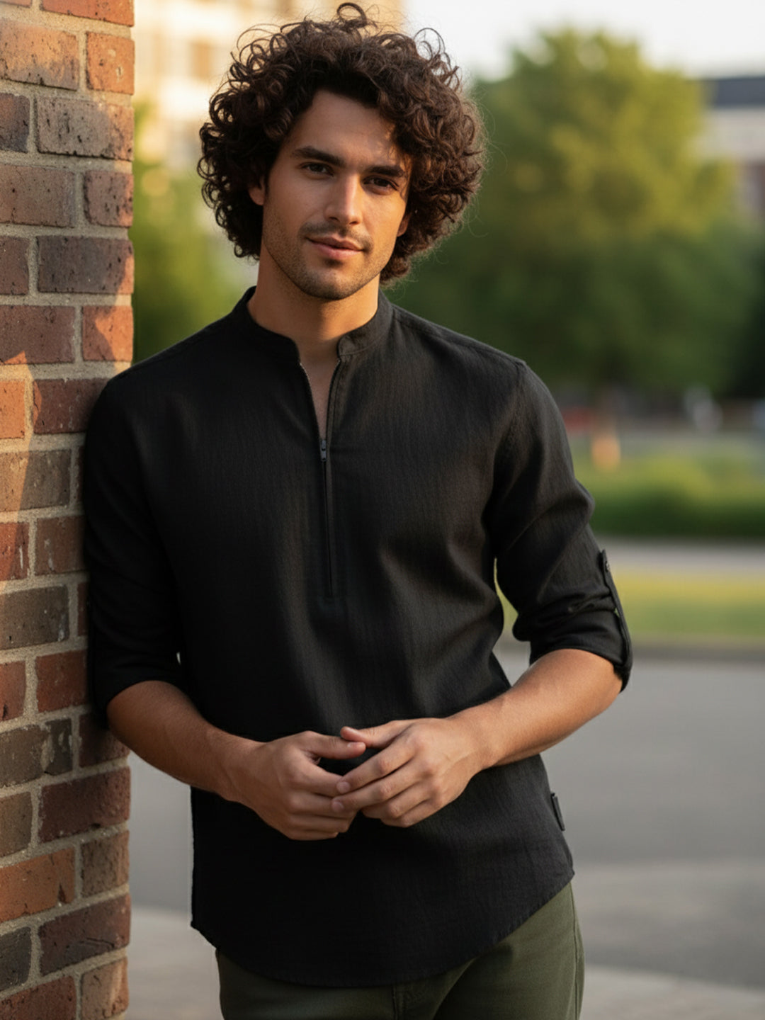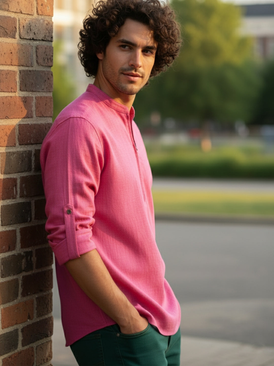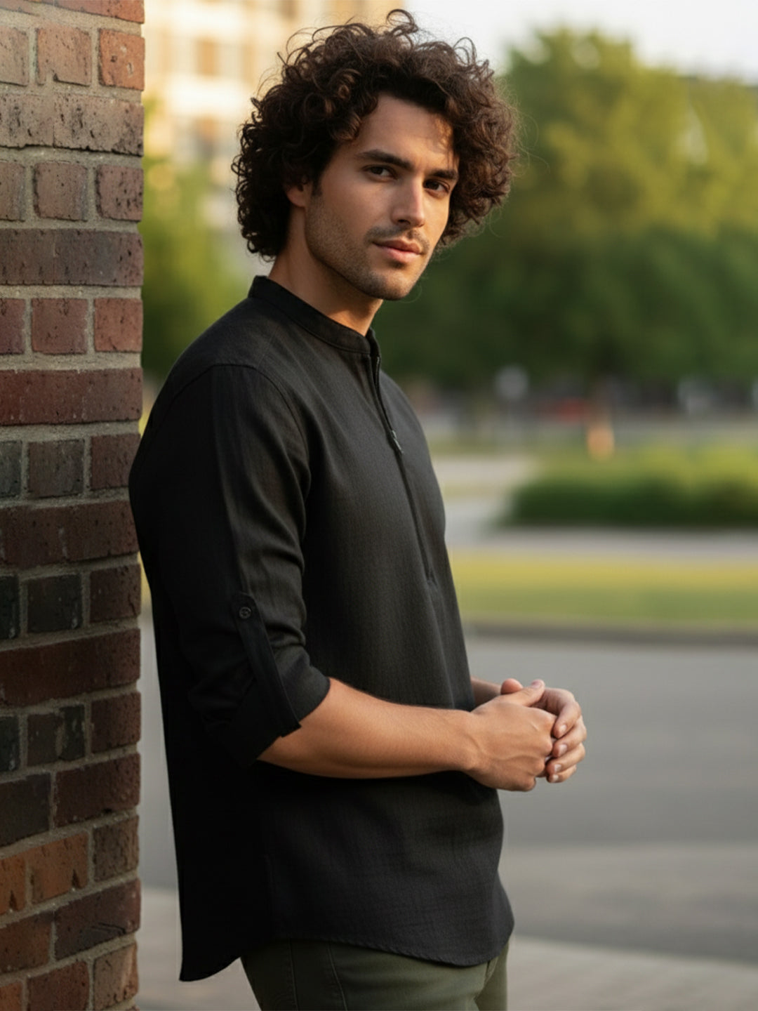 2. यह शर्ट अच्छी गुणवत्ता वाले सूती कपड़े से बनी है जिसका त्वचा पर कोमल स्पर्श होता है और इसकी सतह टेढ़ी-मेढ़ी होती है।