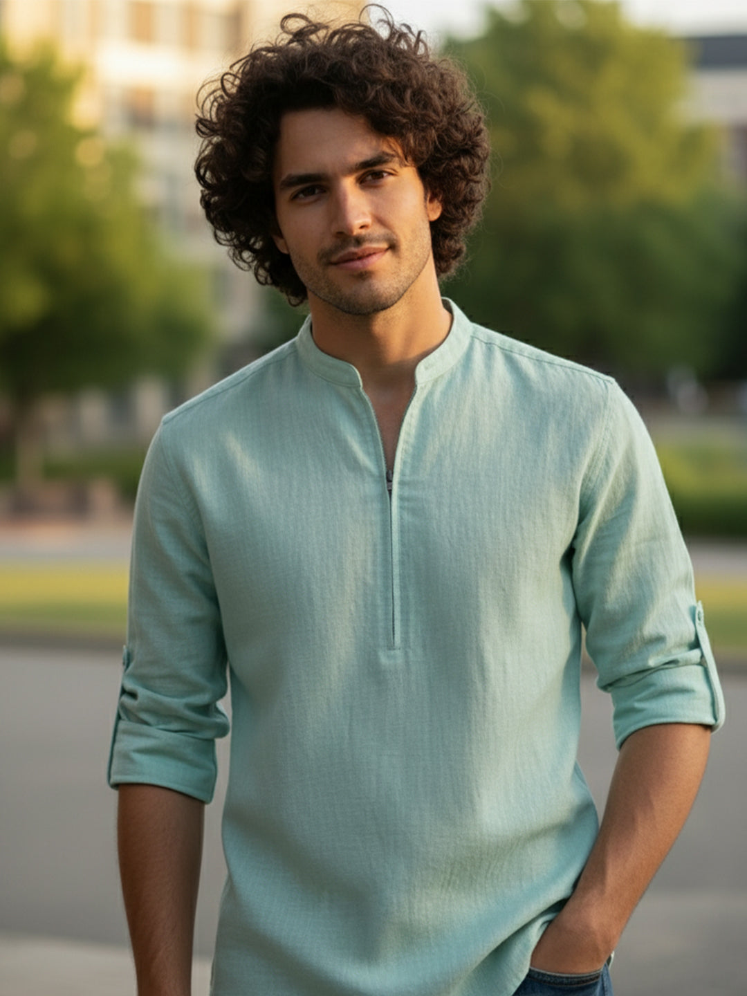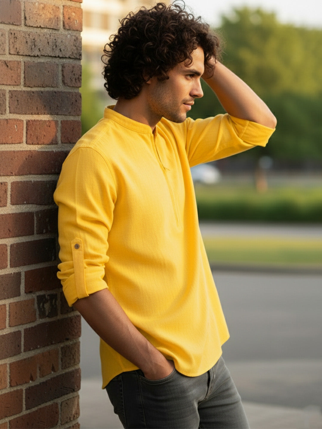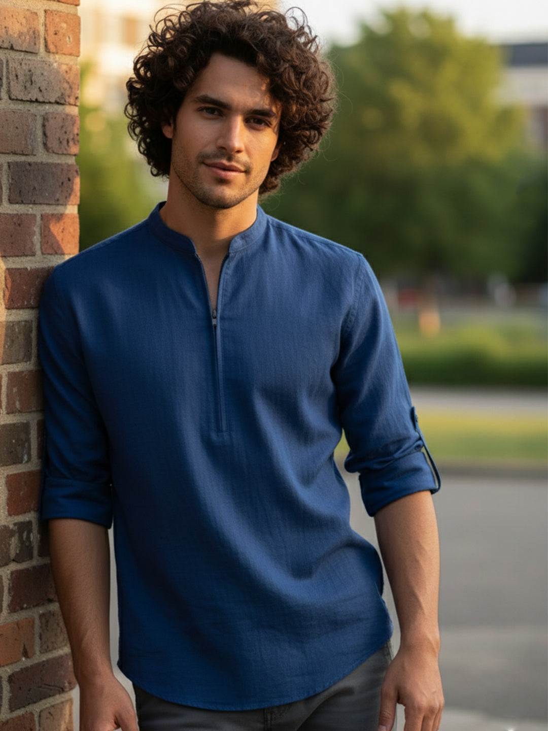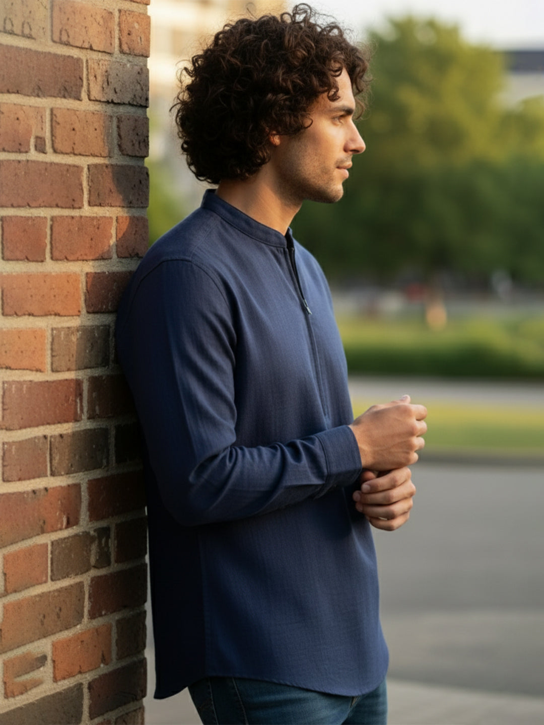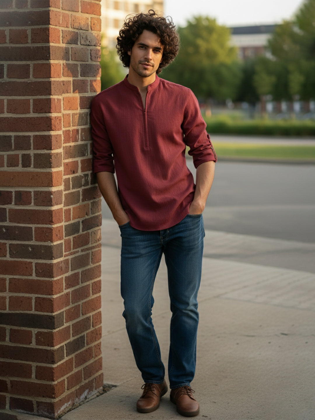 2. यह शर्ट अच्छी गुणवत्ता वाले सूती कपड़े से बनी है जिसका त्वचा पर कोमल स्पर्श होता है और इसकी सतह टेढ़ी-मेढ़ी होती है।