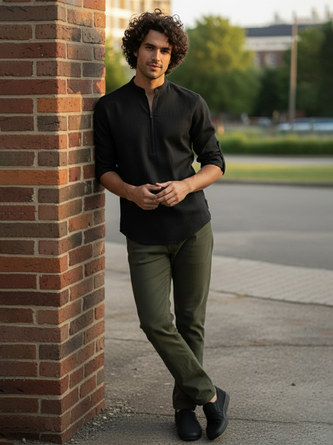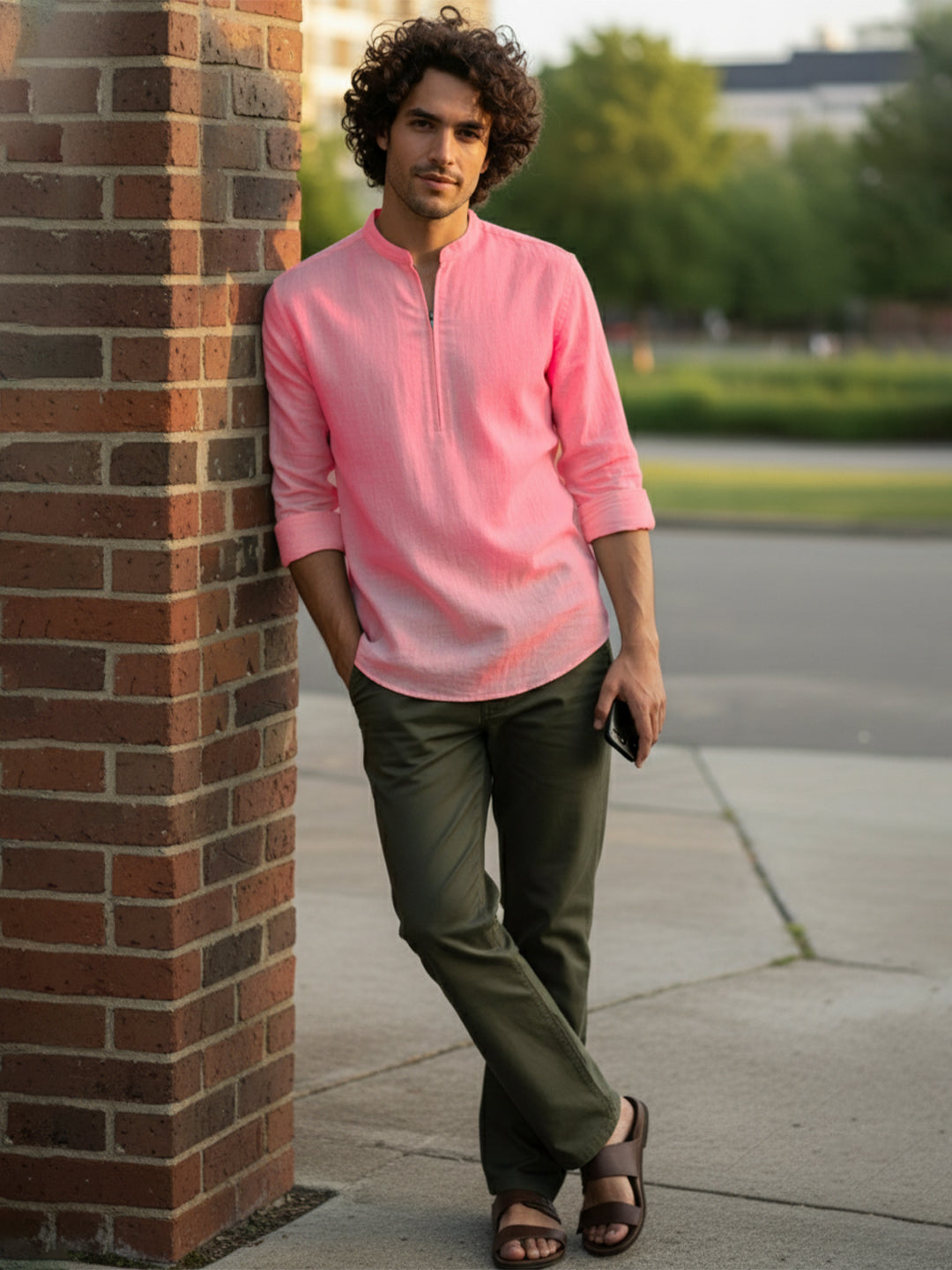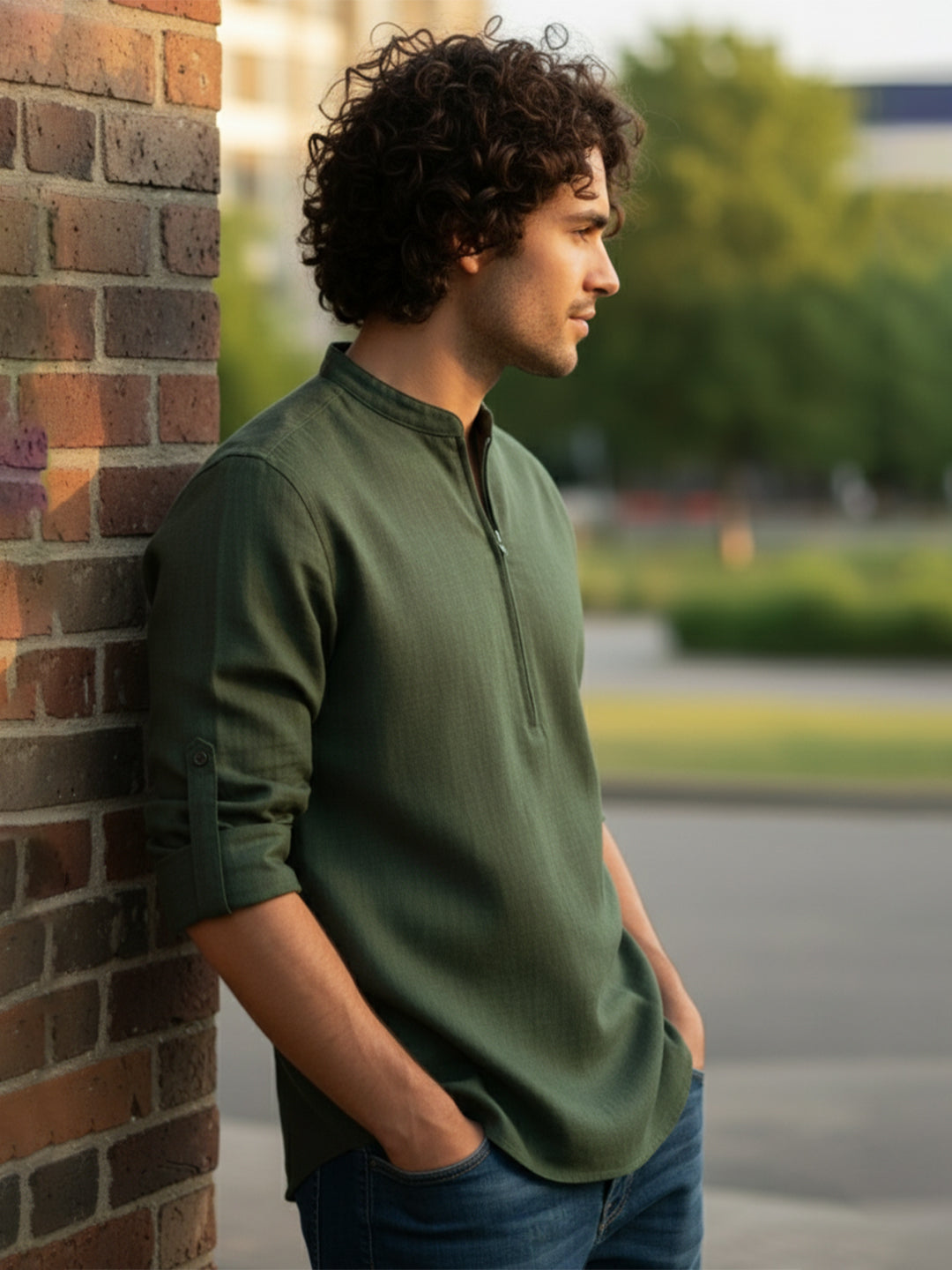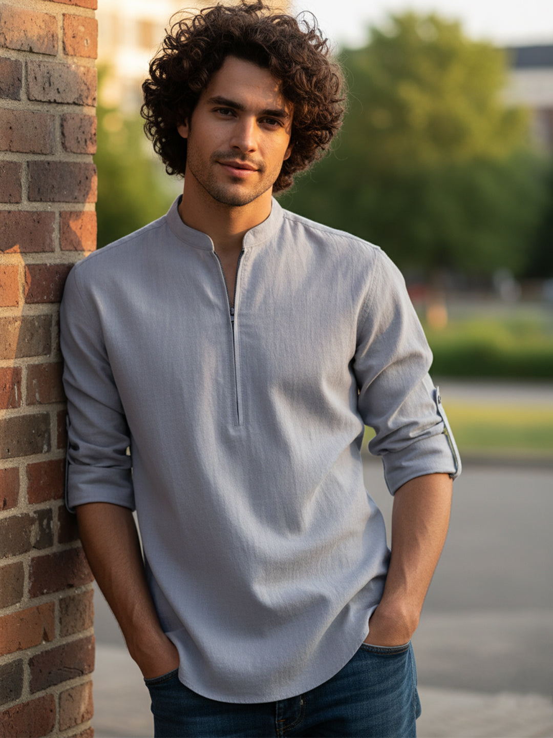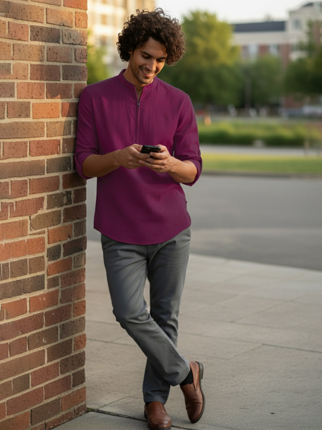 2. यह शर्ट अच्छी गुणवत्ता वाले सूती कपड़े से बनी है जिसका त्वचा पर कोमल स्पर्श होता है और इसकी सतह टेढ़ी-मेढ़ी होती है।