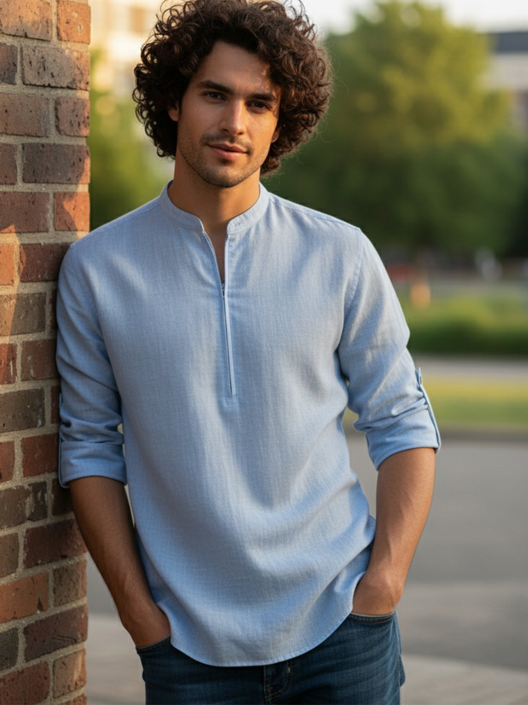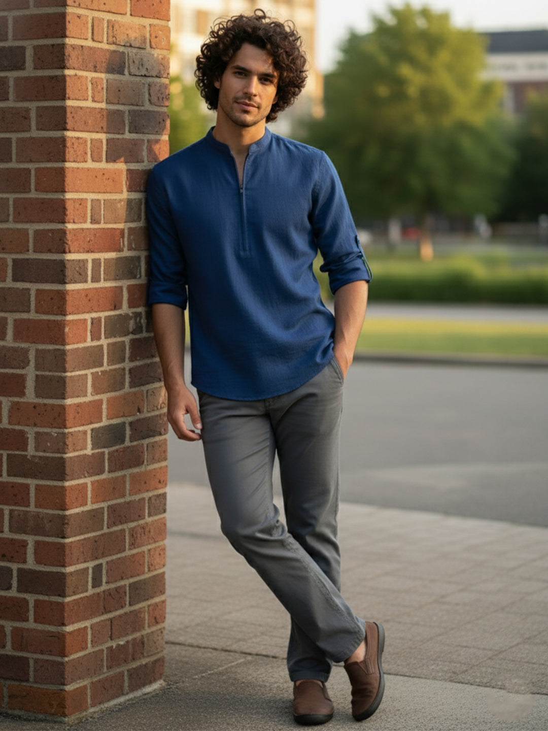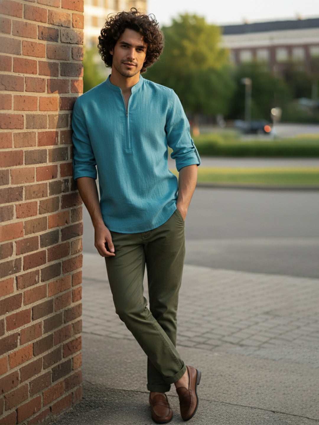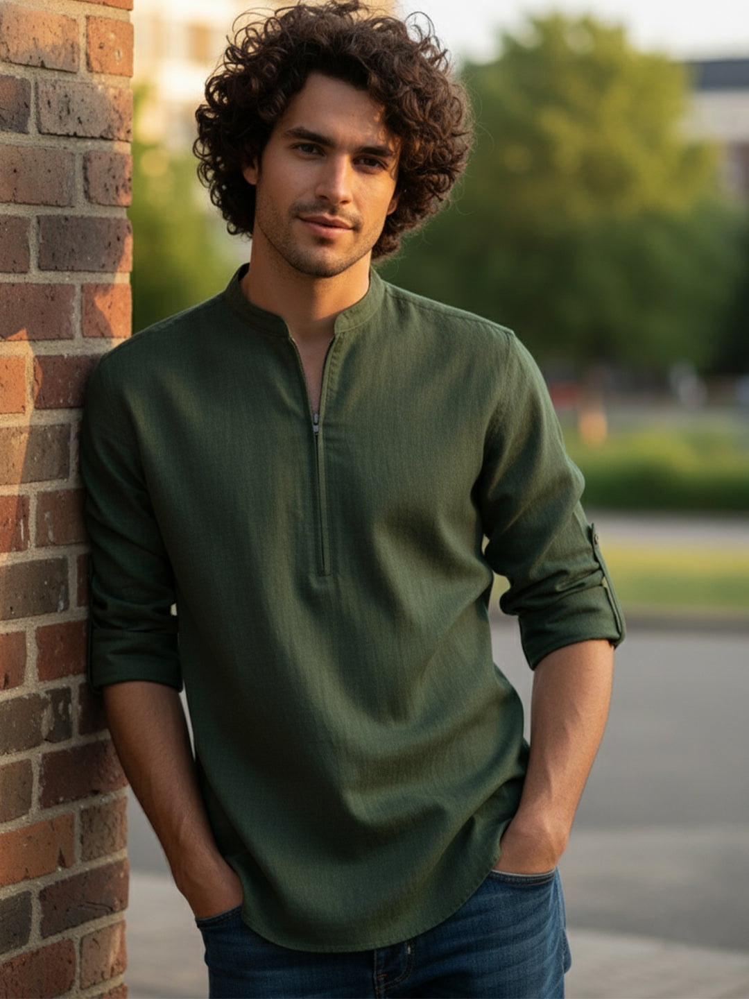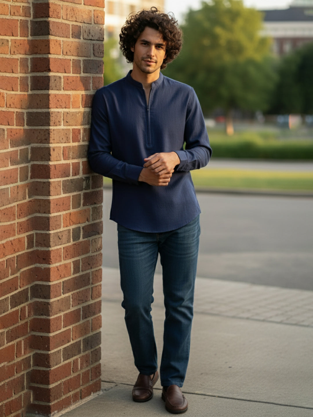 2. यह शर्ट अच्छी गुणवत्ता वाले सूती कपड़े से बनी है जिसका त्वचा पर कोमल स्पर्श होता है और इसकी सतह टेढ़ी-मेढ़ी होती है।