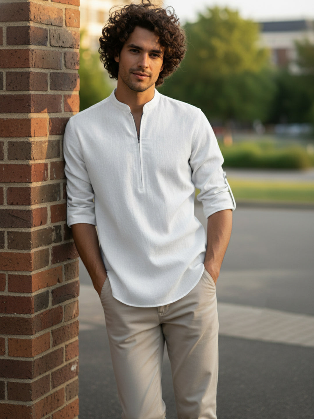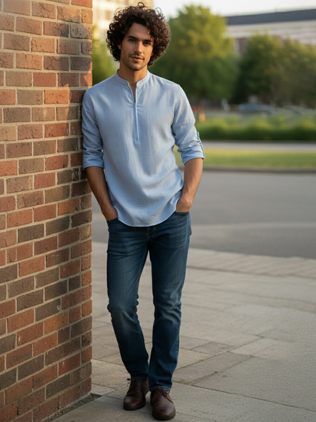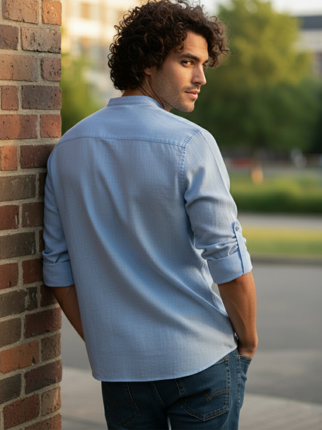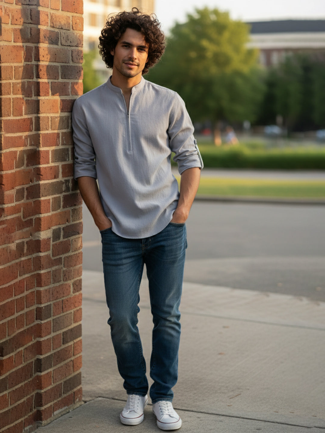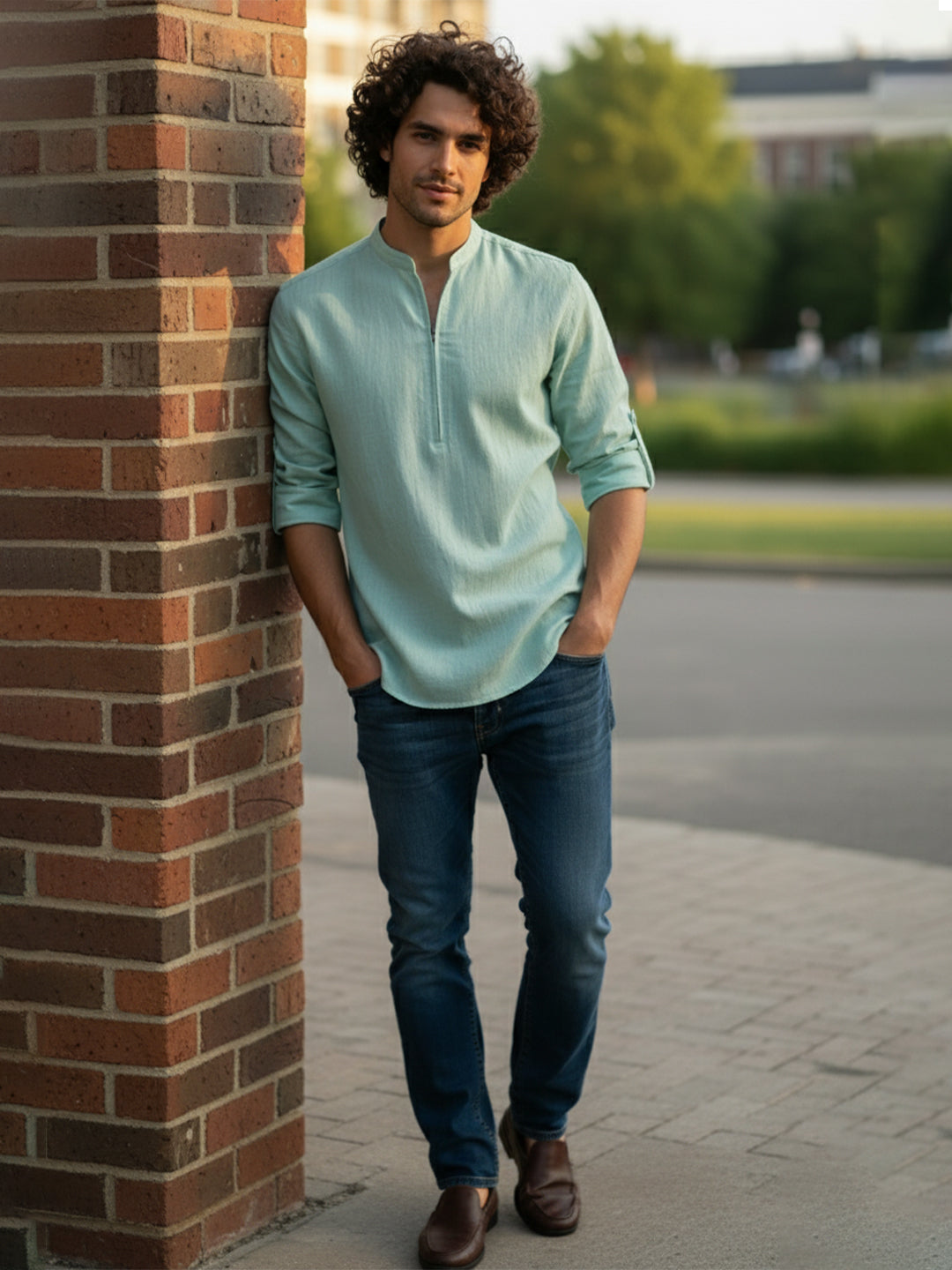 2. यह शर्ट अच्छी गुणवत्ता वाले सूती कपड़े से बनी है जिसका त्वचा पर कोमल स्पर्श होता है और इसकी सतह टेढ़ी-मेढ़ी होती है।