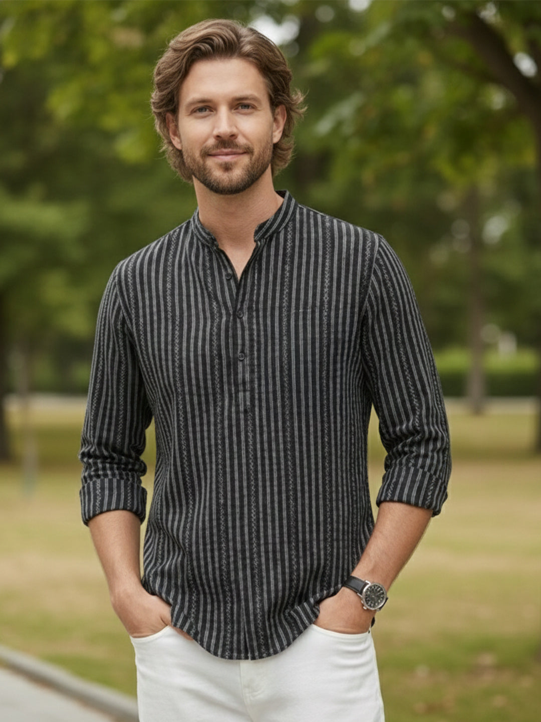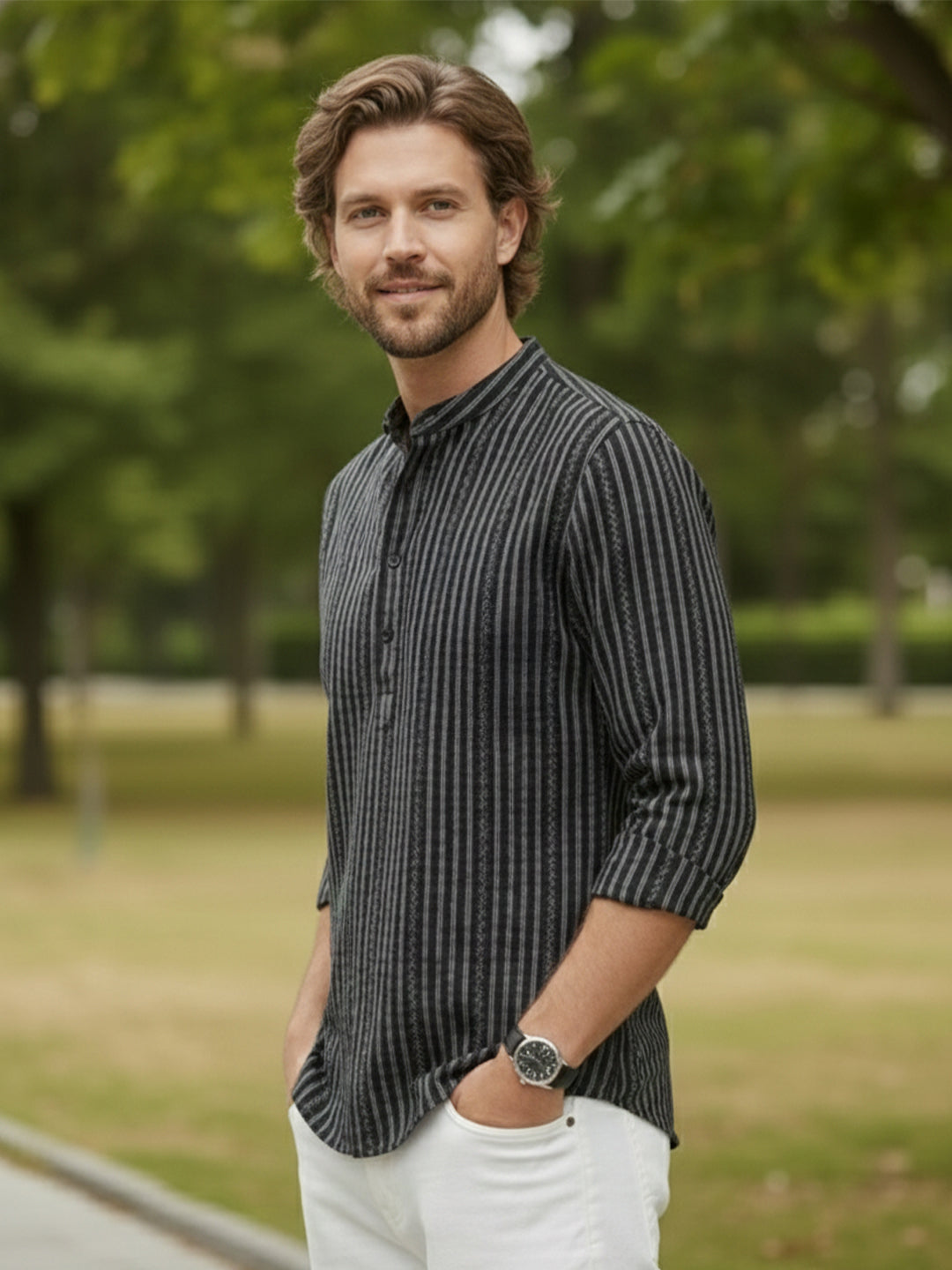 Crafted from high-quality Cotton fabric, the Vida Loca Printed Button-Up Kurta ensures a comfortable and breathable feel, making it perfect for the summer weather. The Chinese collar adds a touch of sophistication, while the curved hemline enhances the shirt's stylish appeal.