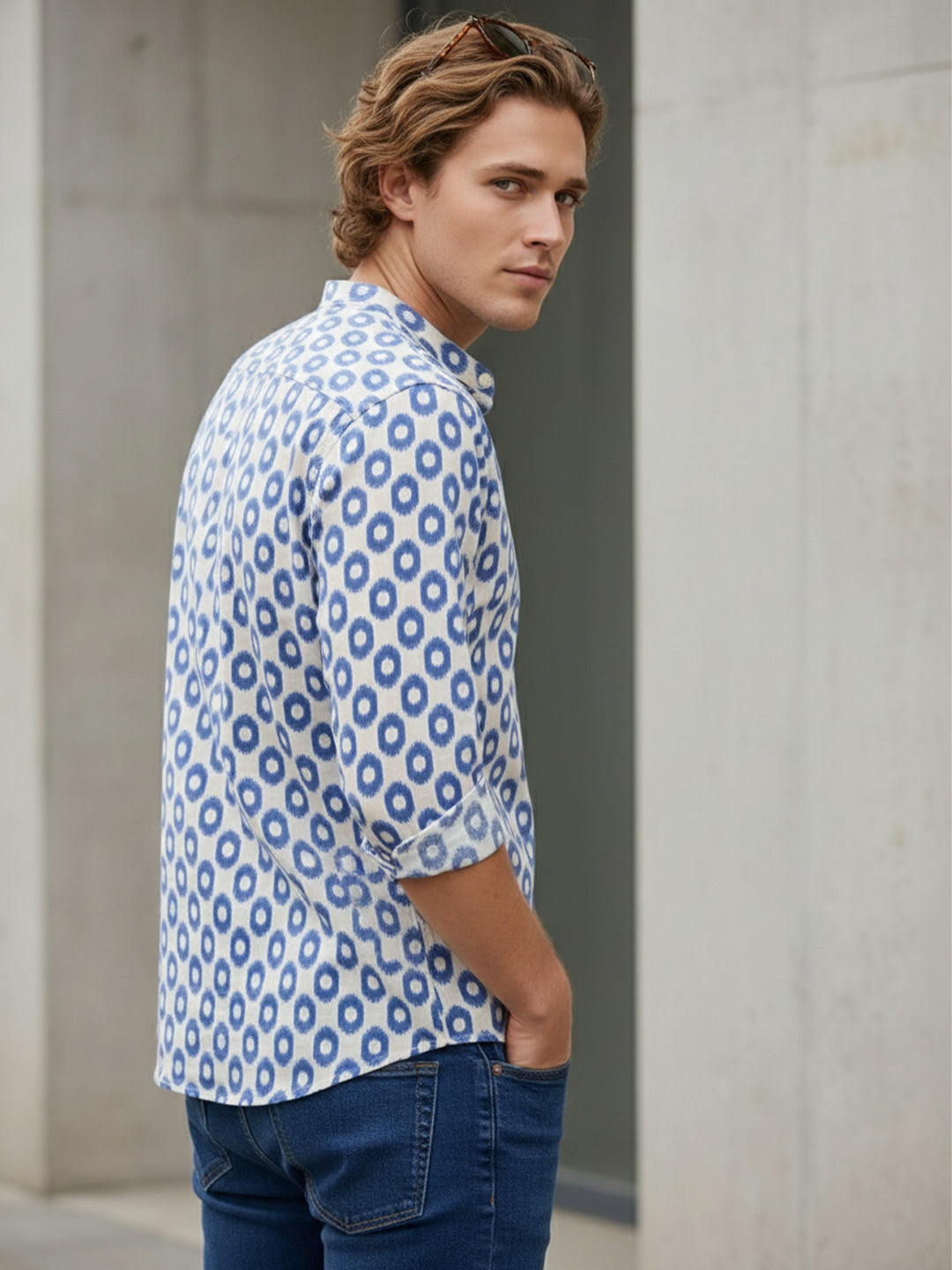 Crafted from high-quality Cotton fabric, the Vida Loca Printed Button-Up Kurta ensures a comfortable and breathable feel, making it perfect for the summer weather. The Chinese collar adds a touch of sophistication, while the curved hemline enhances the shirt's stylish appeal.