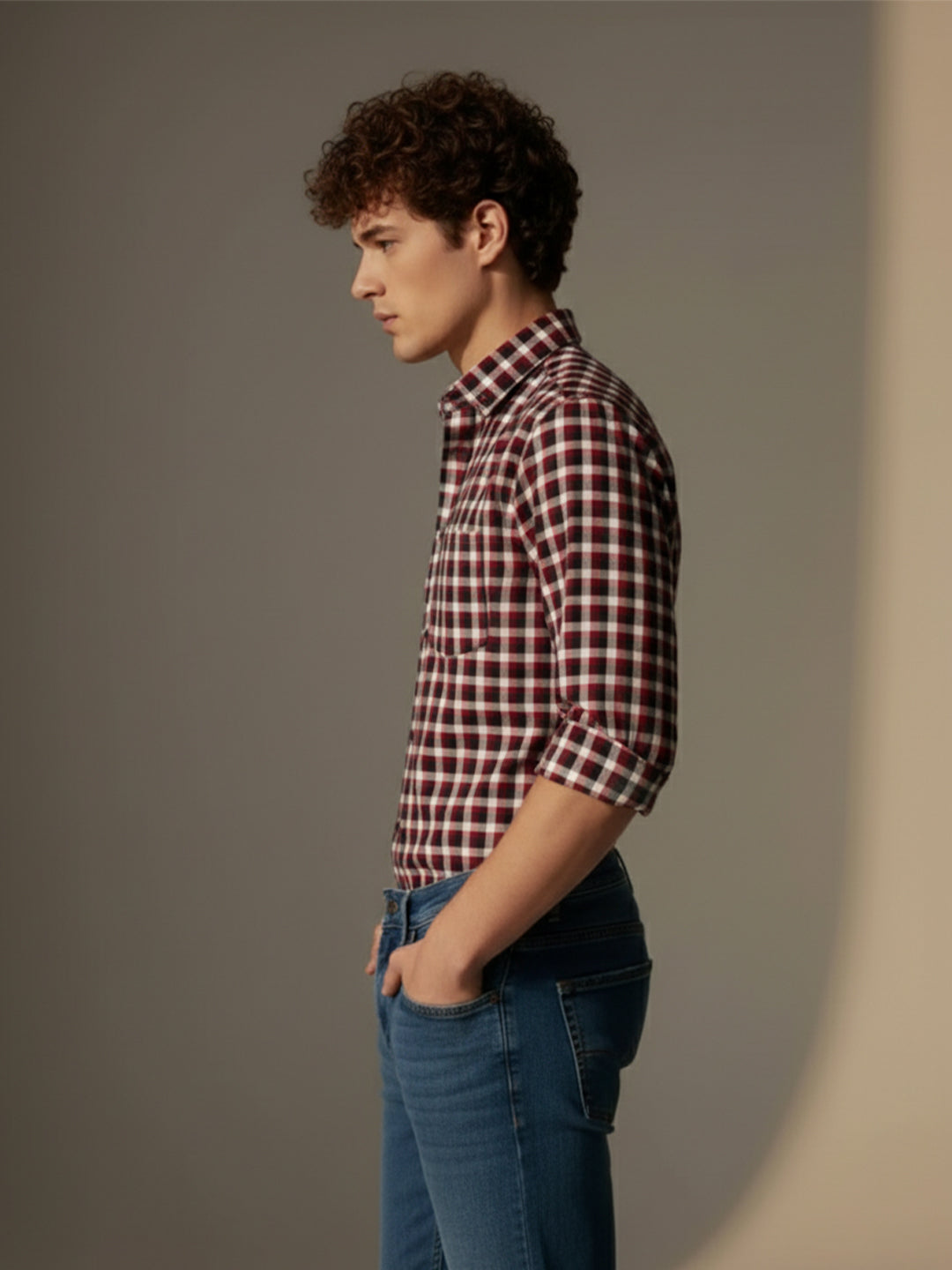 Elevate your formal wear with the Vida Loca cotton check shirt. its timeless maroon color adds sophistication and distinguishes you from the crowd. this regular-fit shirt allows you to breathe comfortably and move freely. the full sleeves can be rolled up for a classic yet casual look suitable for all occasions. the stylish check pattern amplifies masculinity without being overpowering, making this shirt perfect for the modern man`s everyday wardrobe. impress colleagues and acquaintances alike, with the Vida Loca maroon check shirt.